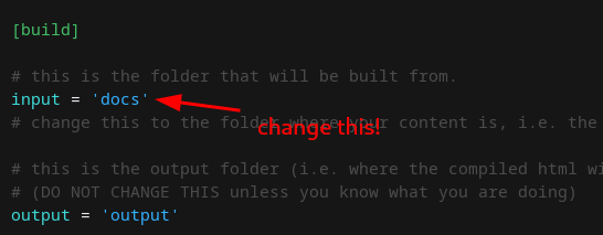 blazeconfig.toml file. Go to the build section and change the string of the input option to the name of your Obsidian Vault. For example, I would have to change it to 'Obsidian Vault'.